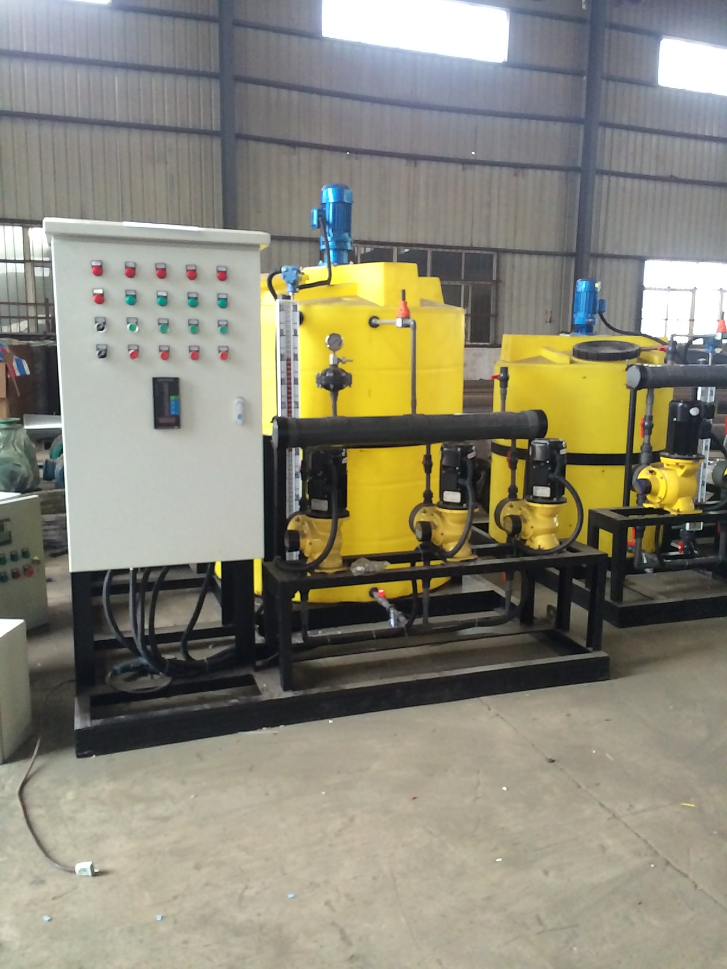 加藥裝置通過(guò)不同的工藝設(shè)計(jì),精確配置各類固體和液體的化學(xué)藥品的溶液,再用計(jì)量泵準(zhǔn)確投加,以達(dá)到各種設(shè)計(jì)要求。如除垢、除氧、混凝、加酸、加堿等。